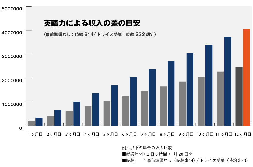 事前に英語の準備を行うかどうかで、得られる収入の差は大きく異なります。