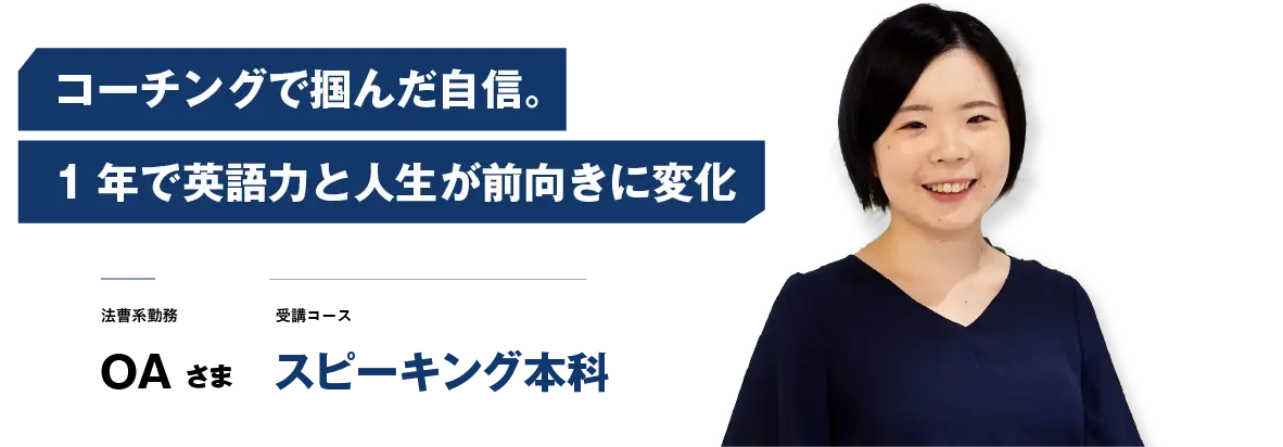 前職は商社で事務職を6年間経験されたOA様。英語への憧れと新たな挑戦を求めてトライズに入会されました。英語力向上だけでなく、転職も実現された1年間の歩みを伺いました。