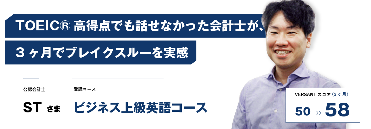 幼少期から英語への憧れを持ち、TOEIC®で高得点を取得するも会話力に課題を感じられていたSTさま。海外の方とのコミュニケーションが必要な業務をきっかけに、トライズで英語学習を開始されました。