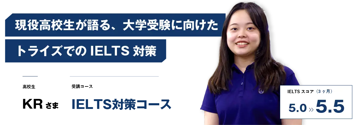 家族旅行でオーストラリアを訪れたことがきっかけで英語に興味を持ち、小学生のころから英検を受けるなど、英語学習に取り組まれてきたKR様。大学受験に向けてIELTSのスコアが必要となり、トライズ IELTS対策コースにご入会されました。