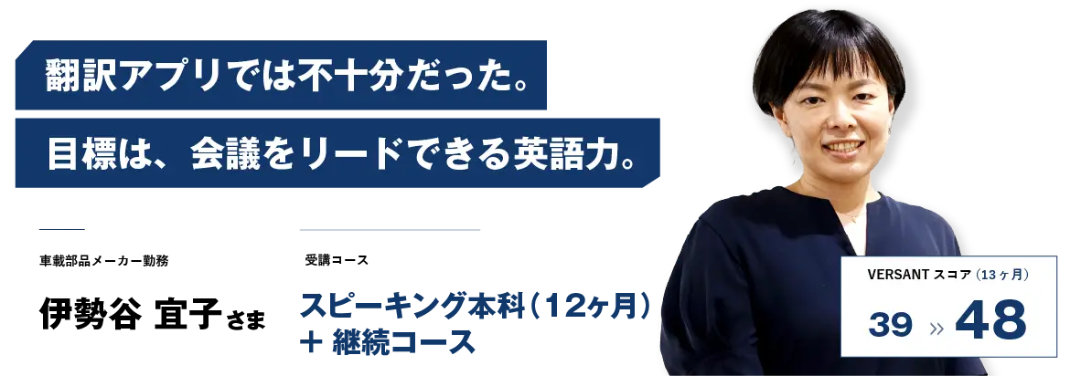 トライズで1年間のスピーキング本科を修了され、現在は継続コースをご受講中の伊勢谷様。継続コースの魅力を伺いました。